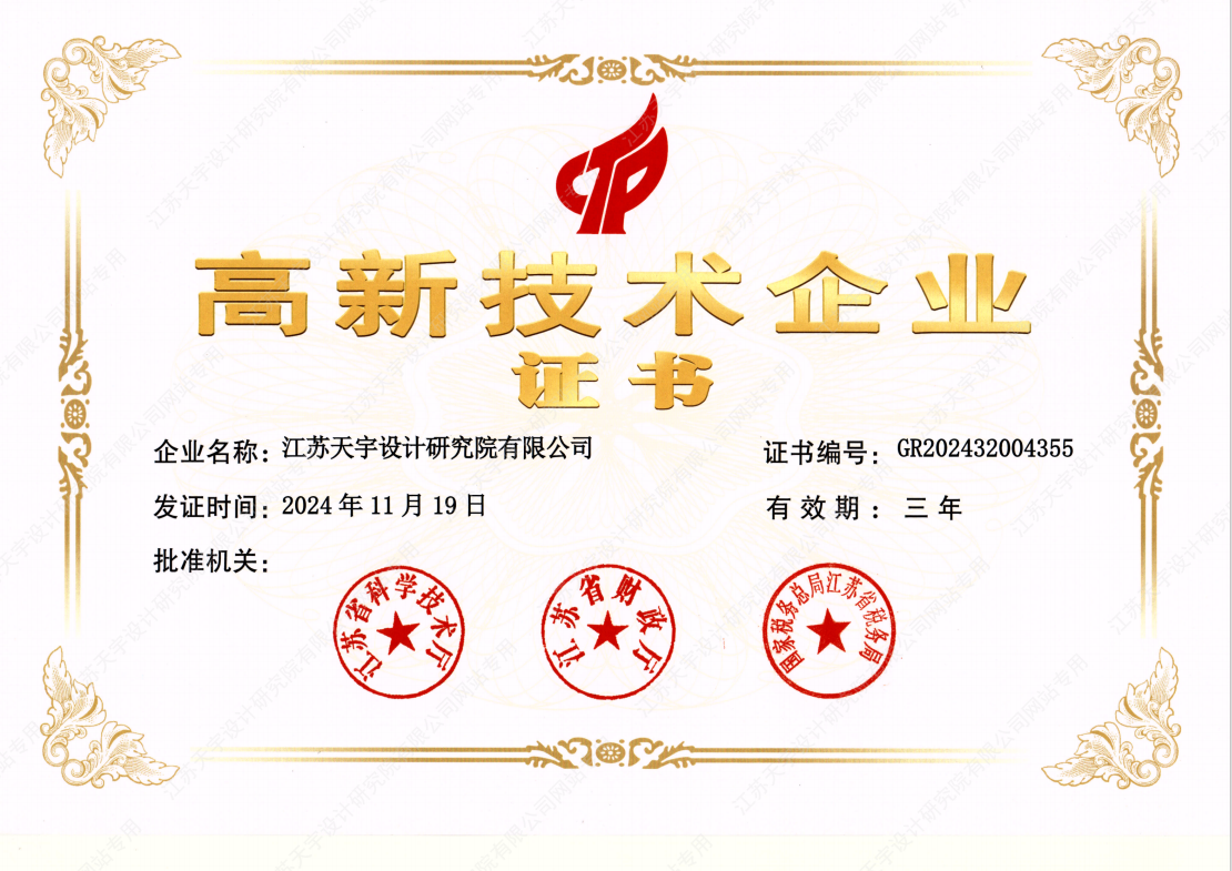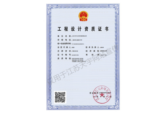 江蘇天宇設計研究院有限公司,其前身為無錫市天宇民防建筑設計研究院有限公司,成立于1983年。2016年公司股份制改革成為中央企業。設計院持有建筑行業甲級(建筑工程甲級、人防工程甲級)、風景園林乙級資質,2006年通過通過ISO9001:2000質量管理體系認證,2017年榮膺高新技術企業稱號。